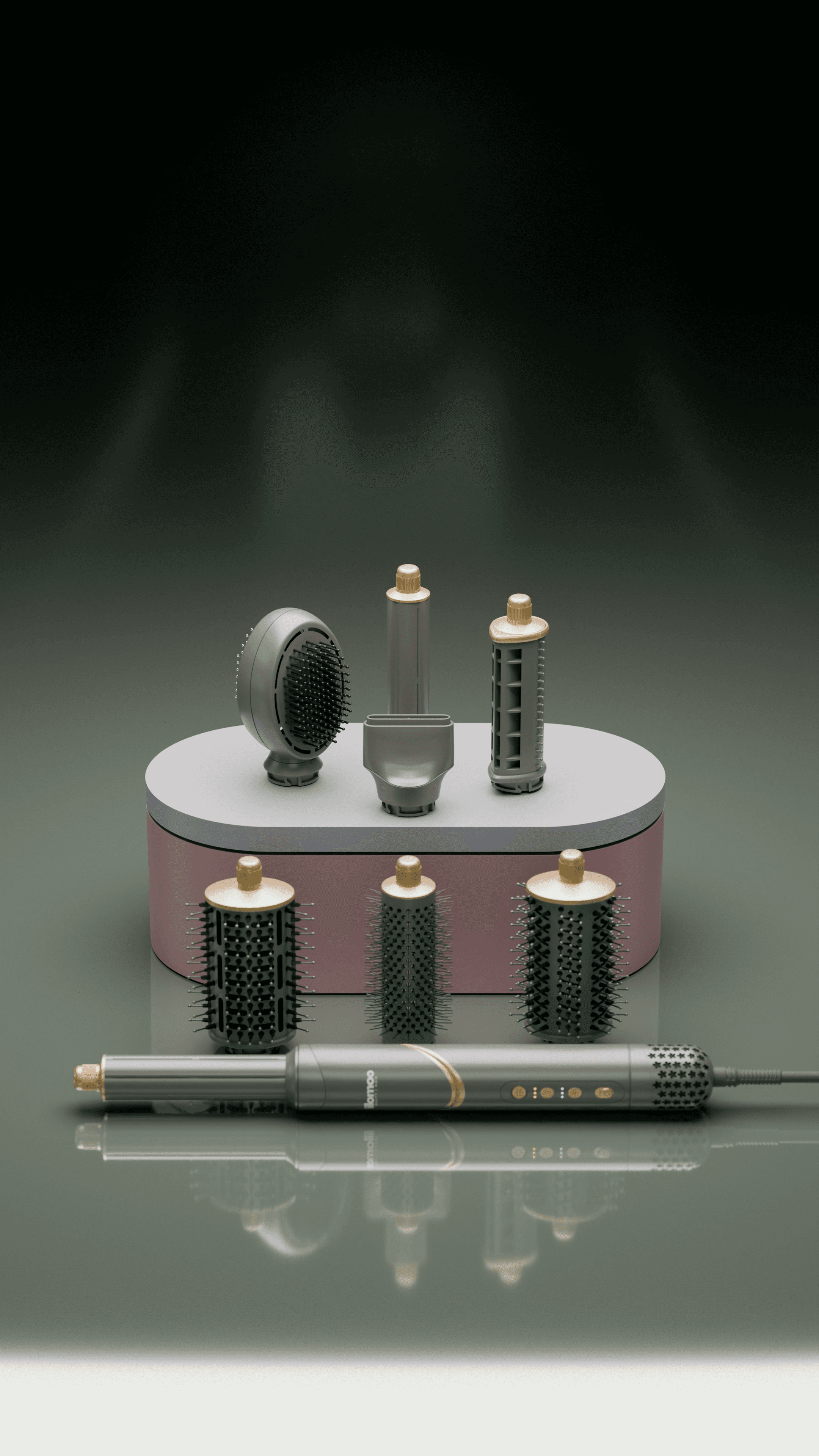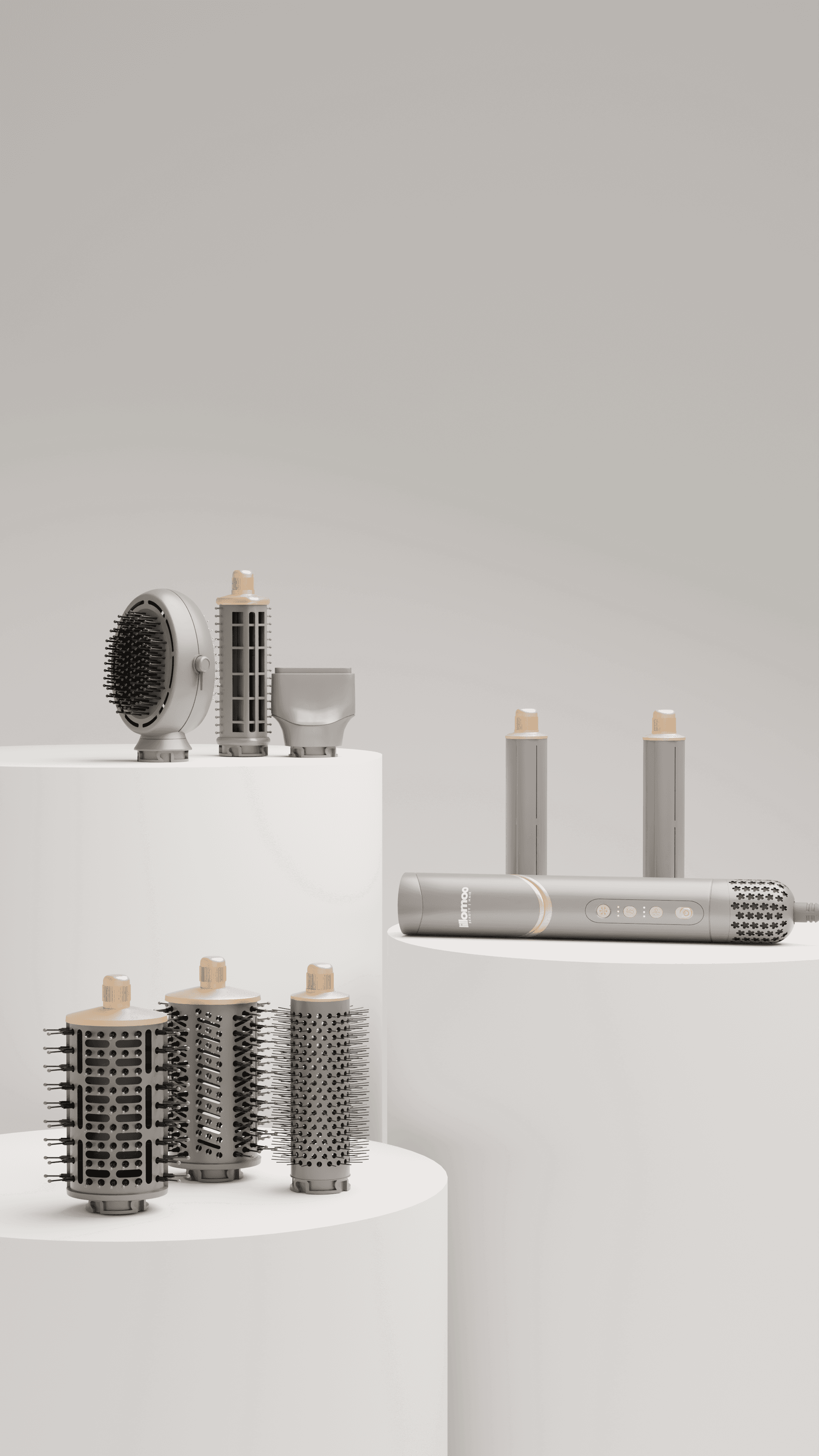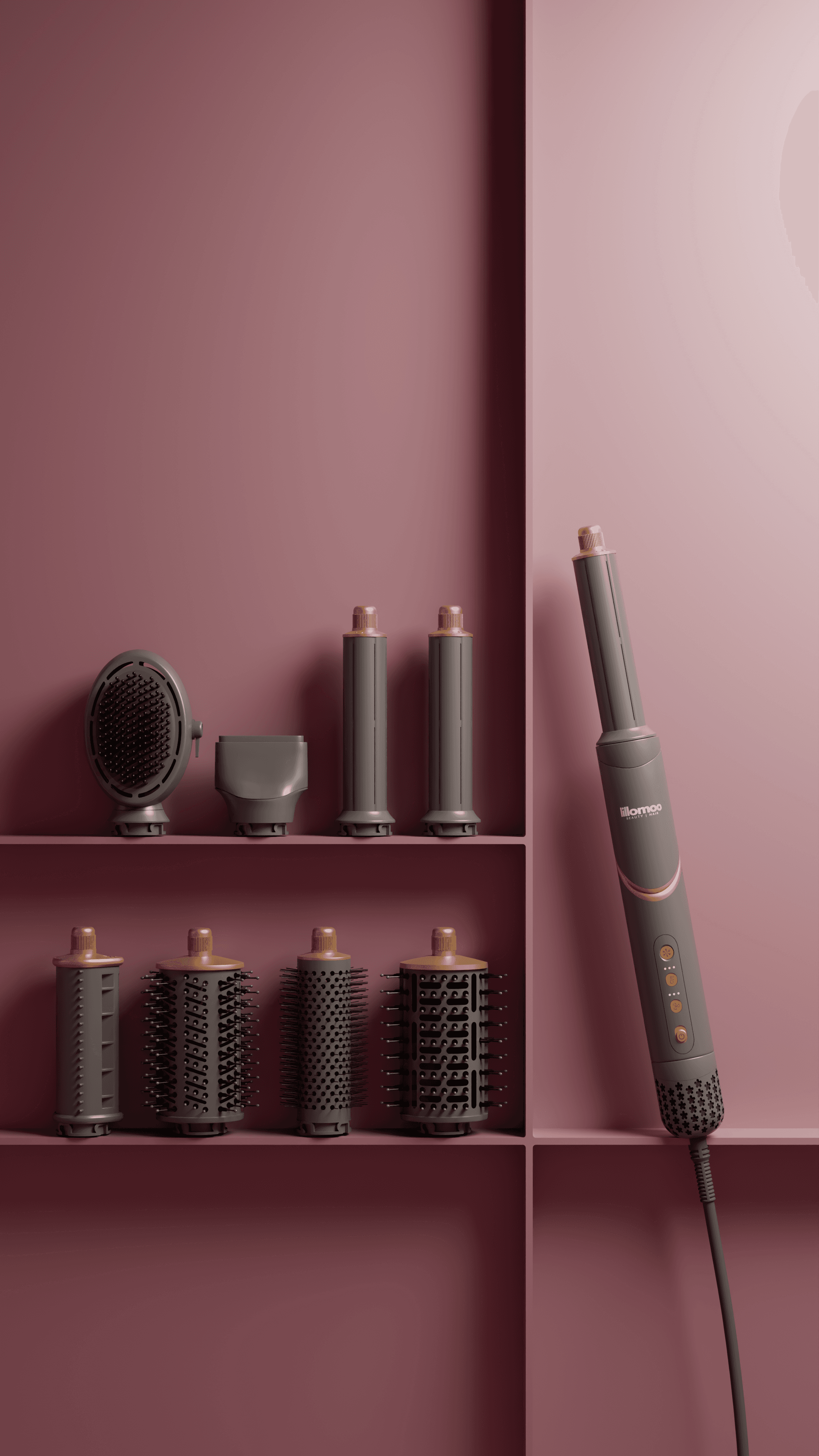 Our role was to create a set of images for social media, showcasing a multifunctional women’s hair styling device and its range of applications.