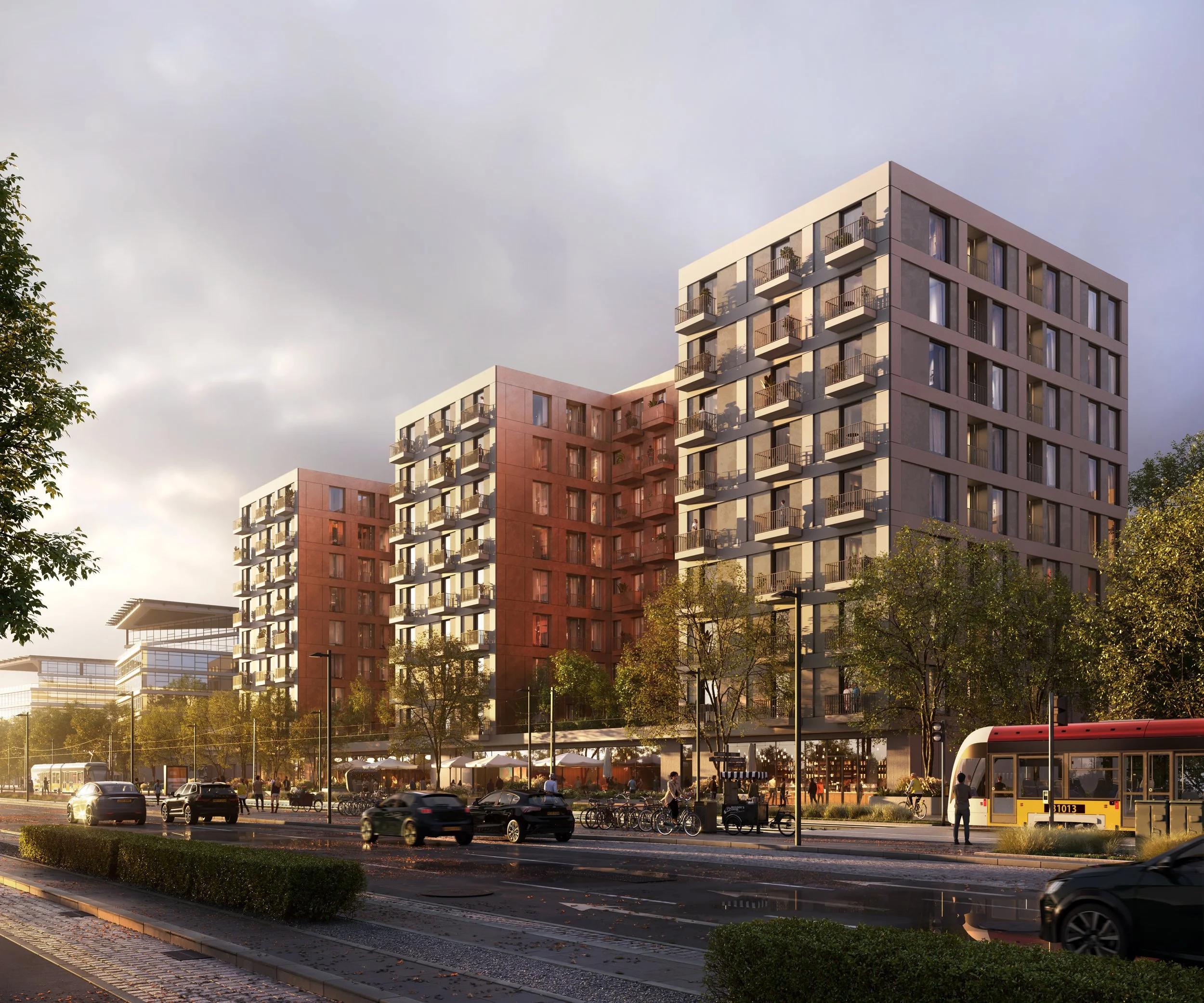 The “Marynarska” project is likely the largest in terms of volume that we have modeled and visualized to date (excluding industrial halls — though those tend to be far less engaging). A key objective of these visuals was to create a strong “wow” effect, as they were developed for an architectural competition for a mixed-use residential and office building in central Warsaw.